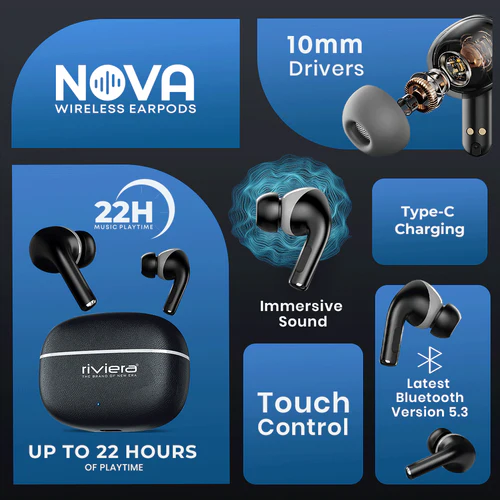 Elevate your audio experience with the NOVA TWS Earphones—designed for comfort, clarity, and convenience. Powered by Bluetooth 5.3 and backed by up to 22 hours of playback, these sleek earbuds keep you connected and entertained throughout the day.