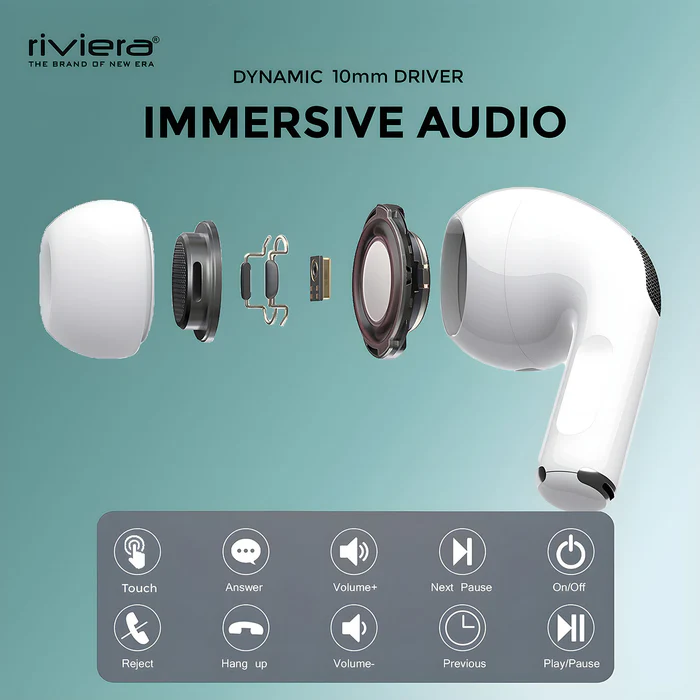 Description – Experience the next level of wireless freedom with the Riviera R003 Wireless EarPods, designed for clear sound, long-lasting comfort, and all-day use. Equipped with Bluetooth 6.0 for stable connectivity and Type-C fast charging, these earphones deliver up to 18 hours of music playtime on a single charge.